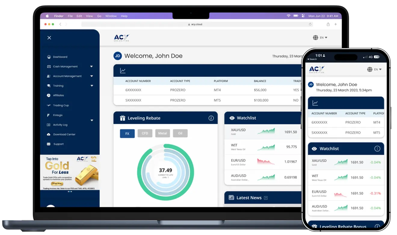 RISK WARNING: Foreign exchange and derivatives trading carry a high level of risk. Before you decide to trade foreign exchange, we encourage you to consider your investment objectives, your risk tolerance and trading experience. It is possible to lose more than your initial investment, so do not invest money you cannot afford to lose. ACY Securities Pty Ltd ( AFSL: 403863) and ACY Capital LLC (Company number: 2610 LLC 2022) provides general advice that does not consider your objectives, financial situation or needs. The content of this website must not be construed as personal advice; please seek advice from an independent financial or tax advisor if you have any questions. The FSG and PDS are available upon request or registration. If there is any advice on this site, it is general advice only.
