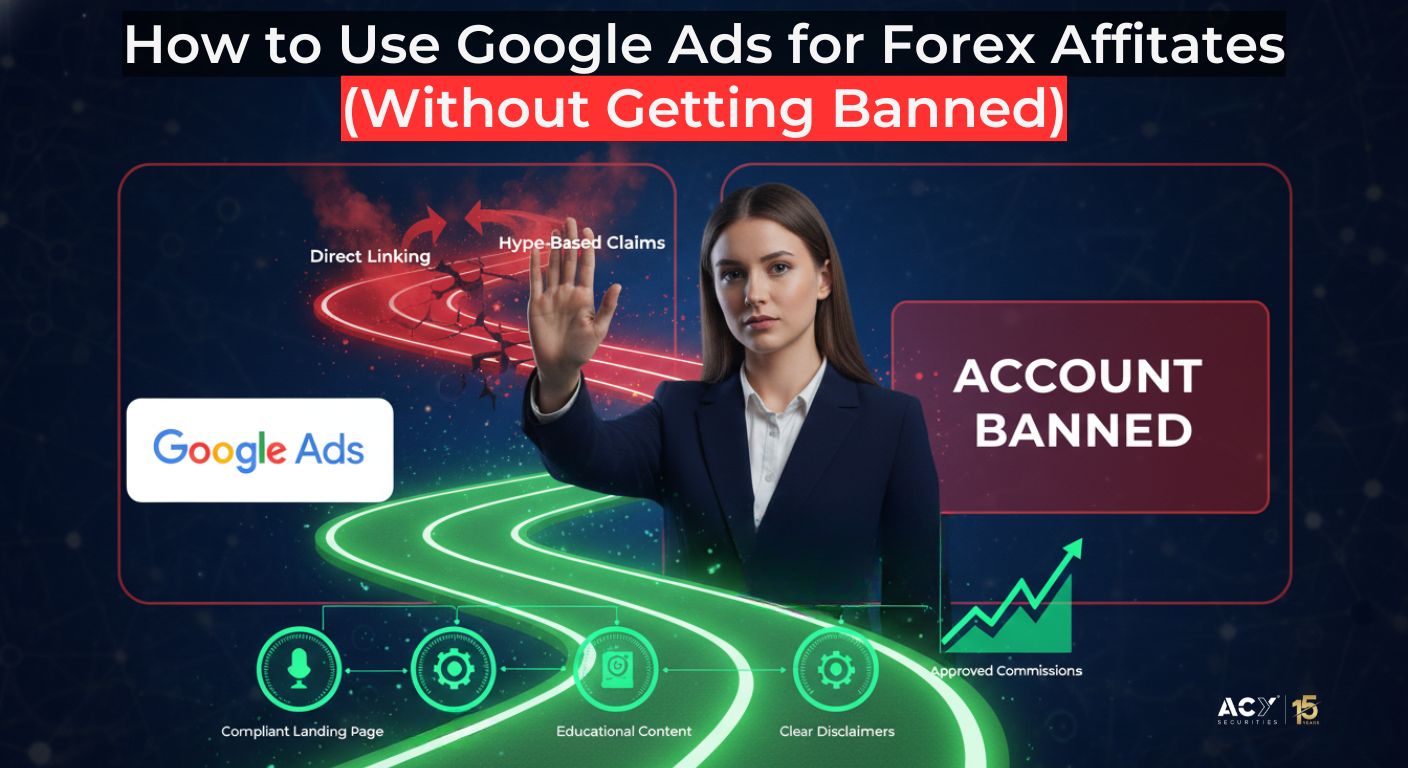 <p><b><span data-contrast="none">Last Updated: November 13, 2025</span></b><span data-ccp-props="{&quot;134233117&quot;:false,&quot;134233118&quot;:false,&quot;335557856&quot;:16777215,&quot;335559738&quot;:0,&quot;335559739&quot;:450}"> </span></p> <p><i><span data-contrast="none">This article is reviewed annually to reflect the latest market regulations and trends</span></i></p> <p><img loading="lazy" decoding="async" class="aligncenter size-large wp-image-2056" src="http://wp.acypartners.com/wp-content/uploads/2025/11/How-to-Use-Google-Ads-for-Forex-Affitates-Without-Getting-Banned-1024x559.jpg" alt="" width="1024" height="559" srcset="https://wp.acypartners.com/wp-content/uploads/2025/11/How-to-Use-Google-Ads-for-Forex-Affitates-Without-Getting-Banned-1024x559.jpg 1024w, https://wp.acypartners.com/wp-content/uploads/2025/11/How-to-Use-Google-Ads-for-Forex-Affitates-Without-Getting-Banned-300x164.jpg 300w, https://wp.acypartners.com/wp-content/uploads/2025/11/How-to-Use-Google-Ads-for-Forex-Affitates-Without-Getting-Banned-768x419.jpg 768w, https://wp.acypartners.com/wp-content/uploads/2025/11/How-to-Use-Google-Ads-for-Forex-Affitates-Without-Getting-Banned-1200x655.jpg 1200w, https://wp.acypartners.com/wp-content/uploads/2025/11/How-to-Use-Google-Ads-for-Forex-Affitates-Without-Getting-Banned.jpg 1408w" sizes="auto, (max-width: 1024px) 100vw, 1024px" /></p> <p>&nbsp;</p> <hr class="ng-star-inserted" /> <h2 class="ng-star-inserted" style="text-align: center;"><span class="ng-star-inserted">How to Use Google Ads for Forex Affiliates (Without Getting Banned)</span></h2> <p class="ng-star-inserted"><span class="ng-star-inserted">For most forex affiliates, Google Ads is a black box inside a minefield. You&#8217;ve heard the horror stories: accounts banned overnight, money lost, and no explanation. But what if the world&#8217;s most powerful advertising platform wasn&#8217;t off-limits? What if the affiliates who succeed on Google aren&#8217;t lucky, but are simply playing a different, smarter game? They&#8217;re not trying to beat the algorithm; they&#8217;re aligning with it. This article is your definitive guide to using Google Ads for forex affiliate marketing by mastering the principles of compliance, intent, and data-driven optimization. Success doesn&#8217;t come overnight, and it&#8217;s important to understand </span><a class="ng-star-inserted" href="https://www.acypartners.com/blog/the-forex-affiliate-program-grind-what-does-it-really-take-to-build-a-big-audience" target="_blank" rel="noopener"><span class="ng-star-inserted">what it really takes to build a big audience</span></a><span class="ng-star-inserted">. By the end of this playbook, you&#8217;ll have a compliance-first framework for turning Google Ads into a scalable and profitable source of high-value leads.</span></p> <p>&nbsp;</p> <p style="text-align: center;"><iframe loading="lazy" title="Keep Traders on Your Website — Not Someone Else’s with Finlogix Economic Calendar Widget!?" src="https://www.youtube.com/embed/esWorrrN5Bo?feature=oembed" width="500" height="281" frameborder="0" allowfullscreen="allowfullscreen" data-mce-fragment="1"></iframe></p> <p class="ng-star-inserted"><strong><span class="TextRun SCXW143516650 BCX8" lang="EN-US" data-contrast="none"><span class="NormalTextRun ContextualSpellingAndGrammarErrorV2Themed SCXW143516650 BCX8">TL;DR</span><span class="NormalTextRun SCXW143516650 BCX8"> (Too Long; </span><span class="NormalTextRun SCXW143516650 BCX8">Didn’t</span><span class="NormalTextRun SCXW143516650 BCX8"> Read)</span></span></strong></p> <ul class="ng-star-inserted"> <li class="ng-star-inserted"> <p class="ng-star-inserted"><strong class="ng-star-inserted"><span class="ng-star-inserted">Compliance is Rule #1:</span></strong><span class="ng-star-inserted"> Google&#8217;s heavy scrutiny exists to protect users from scams. Your ads must be transparent, honest, and free of hype to survive.</span></p> </li> <li class="ng-star-inserted"> <p class="ng-star-inserted"><strong class="ng-star-inserted"><span class="ng-star-inserted">Target High-Intent Keywords:</span></strong><span class="ng-star-inserted"> Win by targeting users who are already looking for a solution (e.g., &#8220;best MAM software review&#8221;), not by trying to convince a broad audience.</span></p> </li> <li class="ng-star-inserted"> <p class="ng-star-inserted"><strong class="ng-star-inserted"><span class="ng-star-inserted">Structure for Relevance:</span></strong><span class="ng-star-inserted"> Use tightly-themed Ad Groups to ensure your keywords, ads, and landing pages are perfectly aligned, which is the secret to a high Quality Score.</span></p> </li> <li class="ng-star-inserted"> <p class="ng-star-inserted"><strong class="ng-star-inserted"><span class="ng-star-inserted">Quality Score is Your Discount:</span></strong><span class="ng-star-inserted"> A high Quality Score tells Google your ad is relevant, and they will reward you with a lower cost-per-click, making your campaigns more profitable.</span></p> </li> <li class="ng-star-inserted"> <p class="ng-star-inserted"><strong class="ng-star-inserted"><span class="ng-star-inserted">Track Your ROAS, Not Just Clicks:</span></strong><span class="ng-star-inserted"> The only metric that matters is your Return on Ad Spend (ROAS). If you&#8217;re not tracking which keywords lead to actual commissions, you&#8217;re flying blind.</span></p> </li> </ul> <h2 class="ng-star-inserted"></h2> <h2 class="ng-star-inserted" style="text-align: center;"><span class="ng-star-inserted">Why Does Google Scrutinize Financial Ads So Heavily?</span></h2> <p><img loading="lazy" decoding="async" class="aligncenter size-large wp-image-810" src="http://wp.acypartners.com/wp-content/uploads/2025/07/acypartners-regulations-with-acy.com_-1024x281.jpeg" alt="regulations of acypartner by acy.com" width="1024" height="281" srcset="https://wp.acypartners.com/wp-content/uploads/2025/07/acypartners-regulations-with